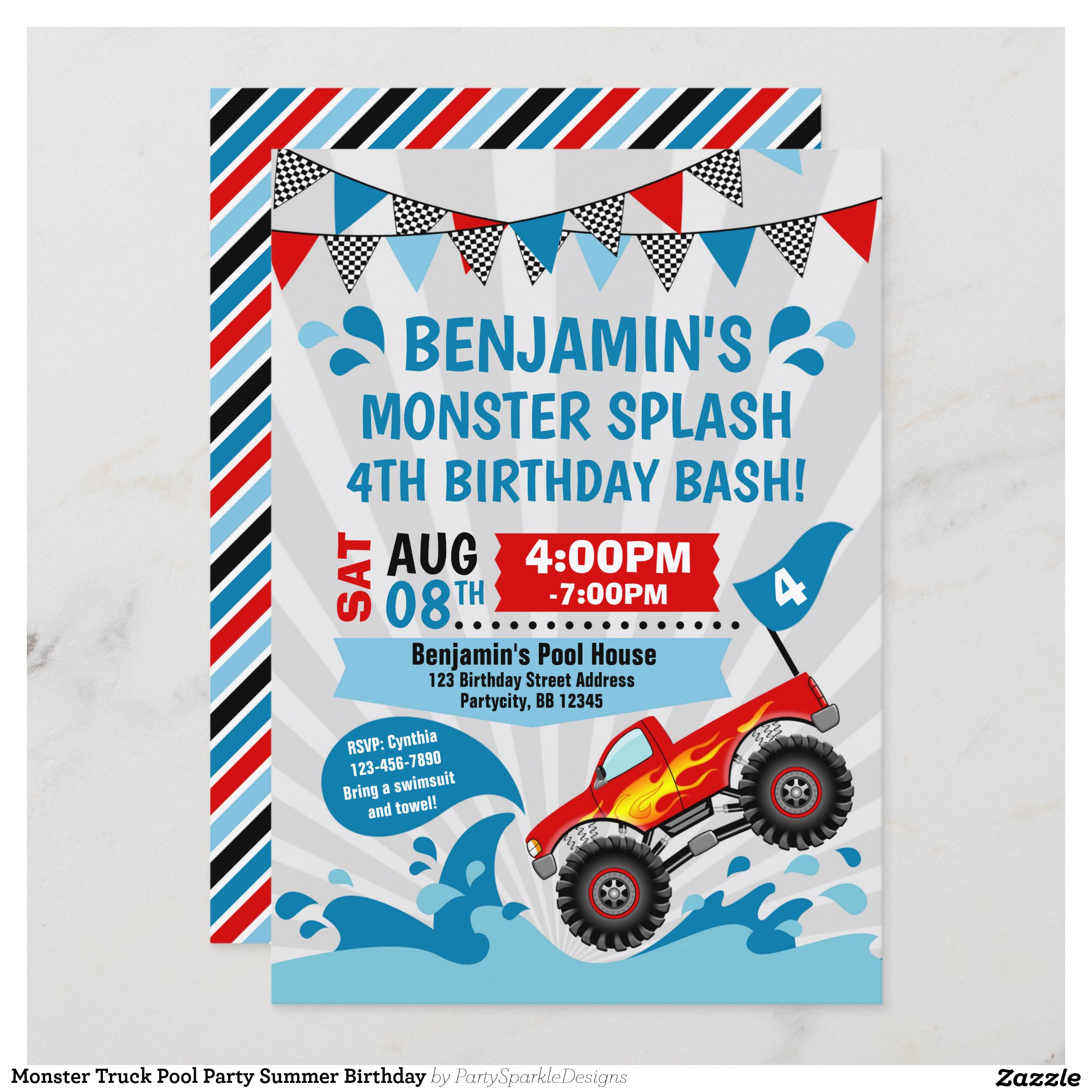 Be the first to review “Monster Truck Pool Party Summer Birthday Invitation”