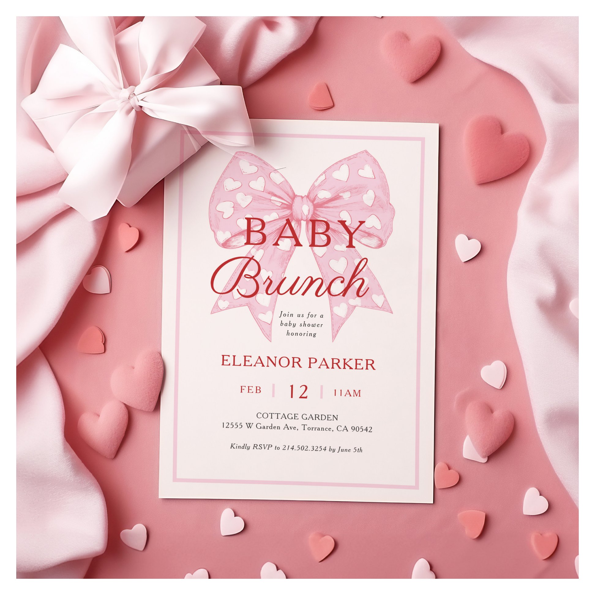 Pink Bow Sweetheart Baby Shower Brunch Invitation
