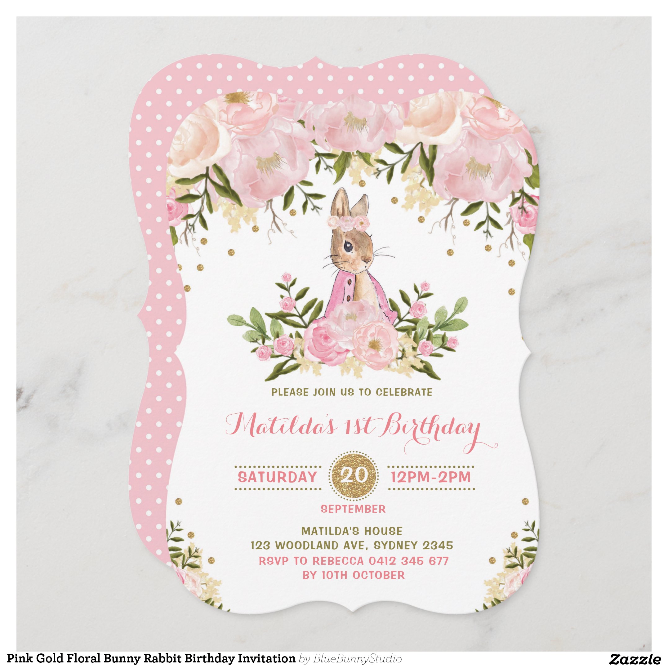 Be the first to review “Pink Gold Floral Bunny Rabbit Birthday Invitation”