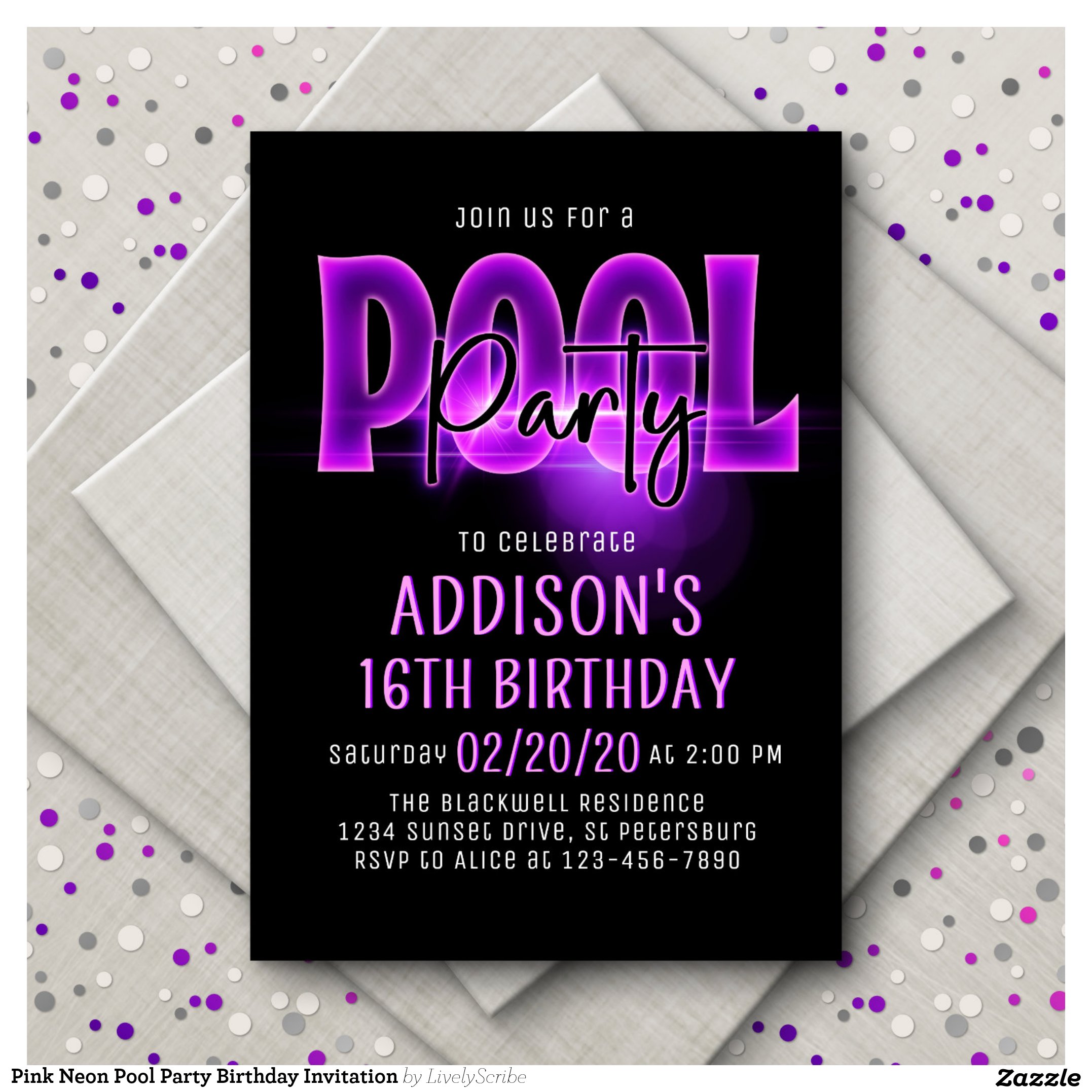Be the first to review “Pink Neon Pool Party Birthday Invitation”