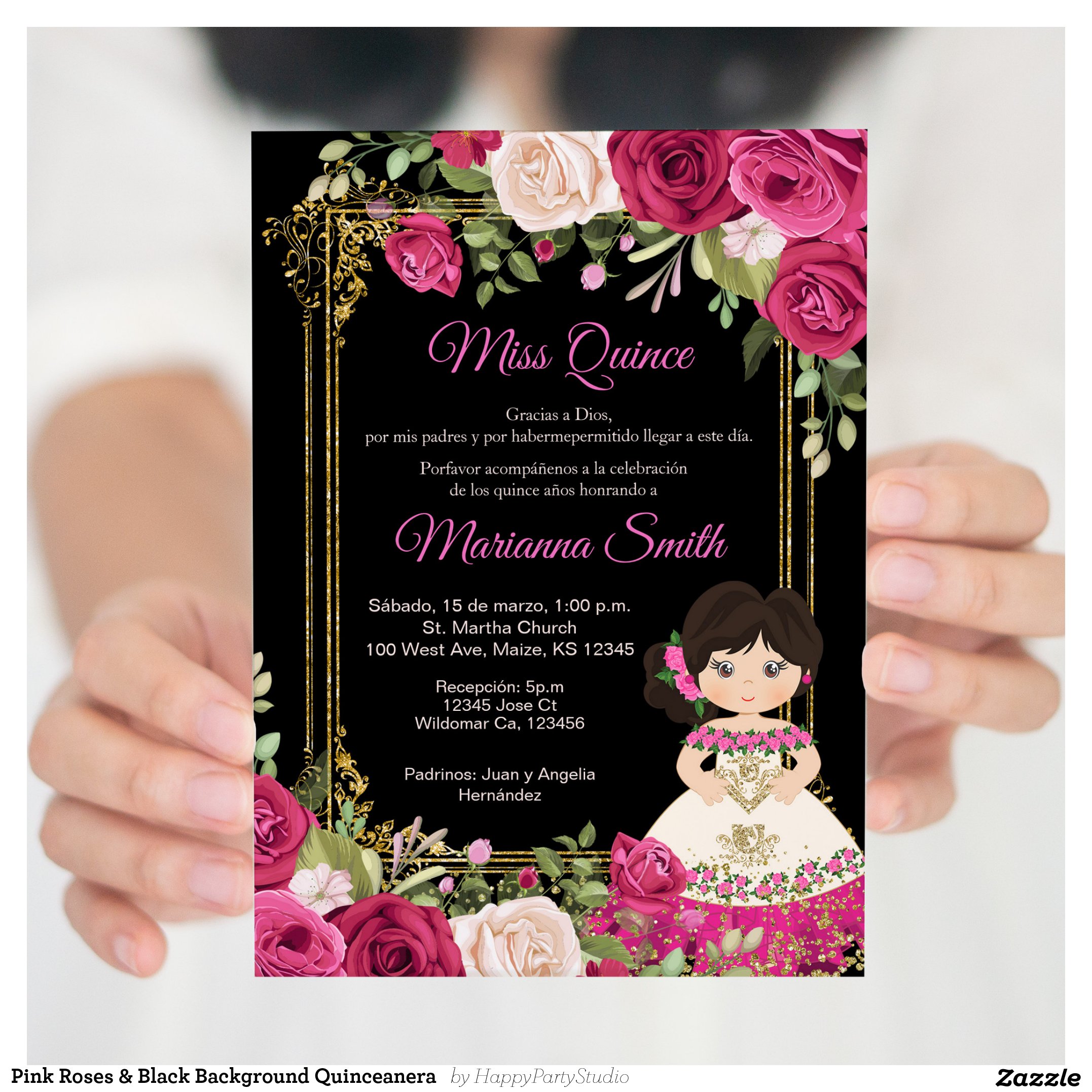 Be the first to review “Pink Roses & Black Background Quinceanera Invitation”