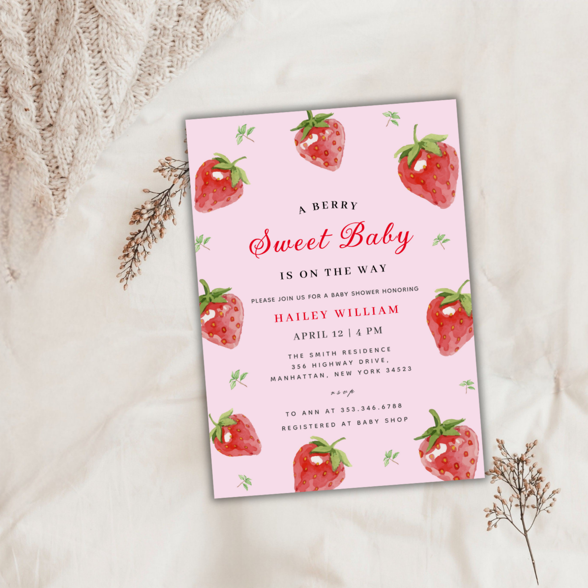 Be the first to review “Pink Strawberry Berry Sweet Girl Baby Shower Invitation”