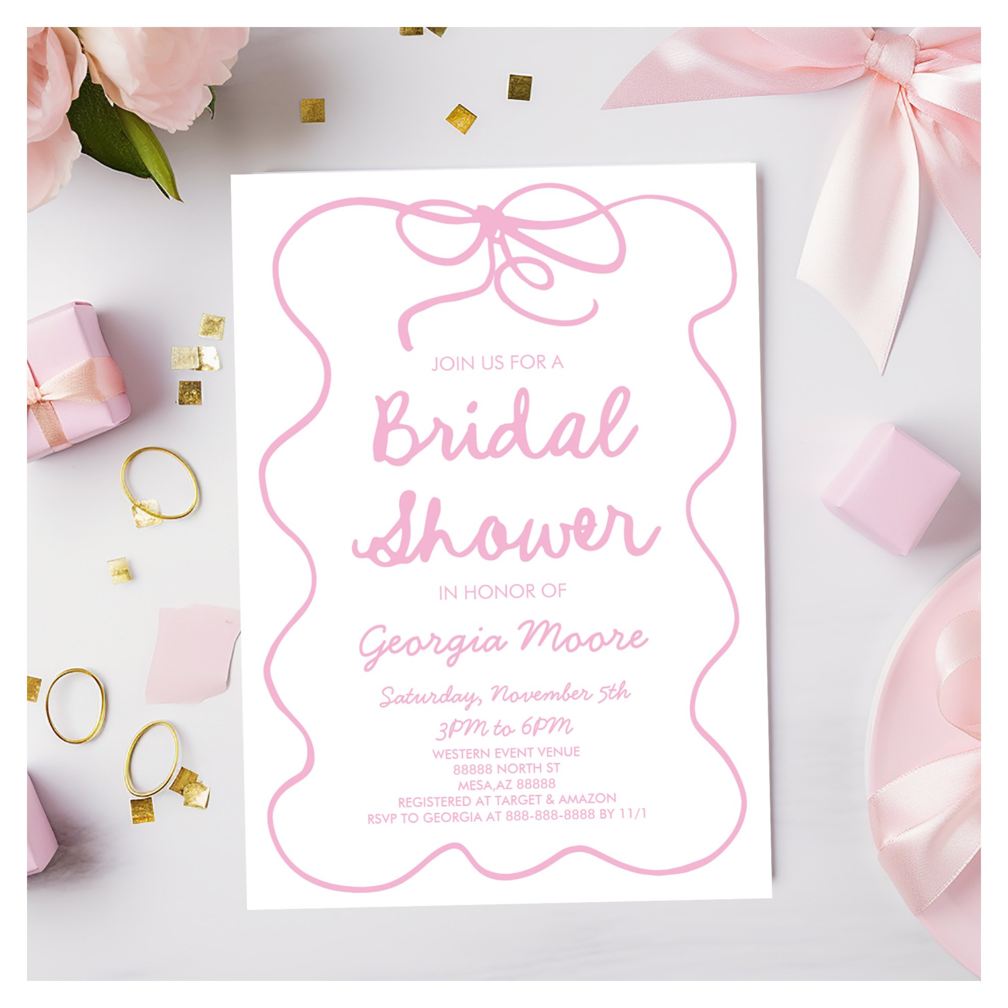 Be the first to review “Pink Whimsical Hand Drawn Bow Bridal Shower Invitation”