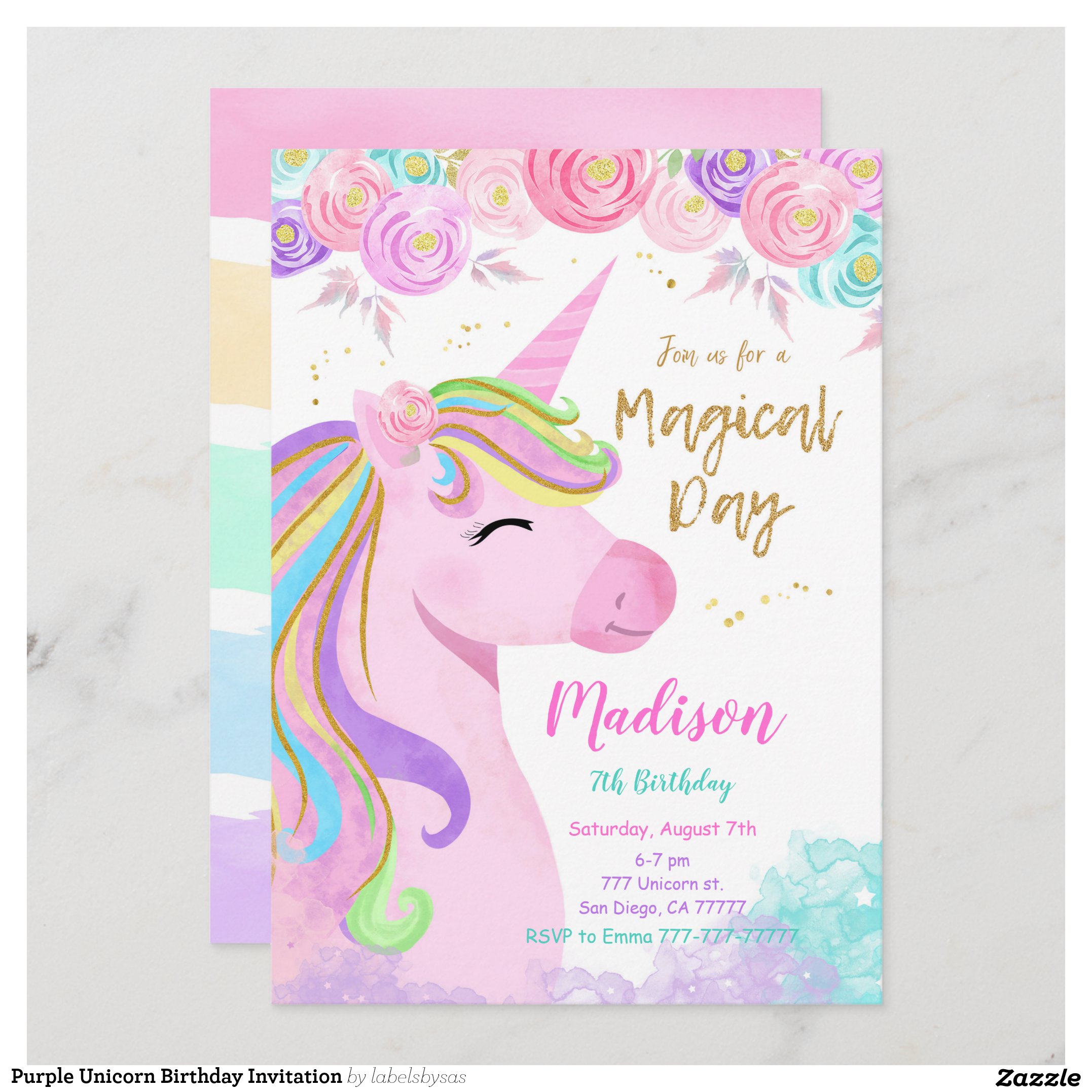 Be the first to review “Purple Unicorn Birthday Invitation”