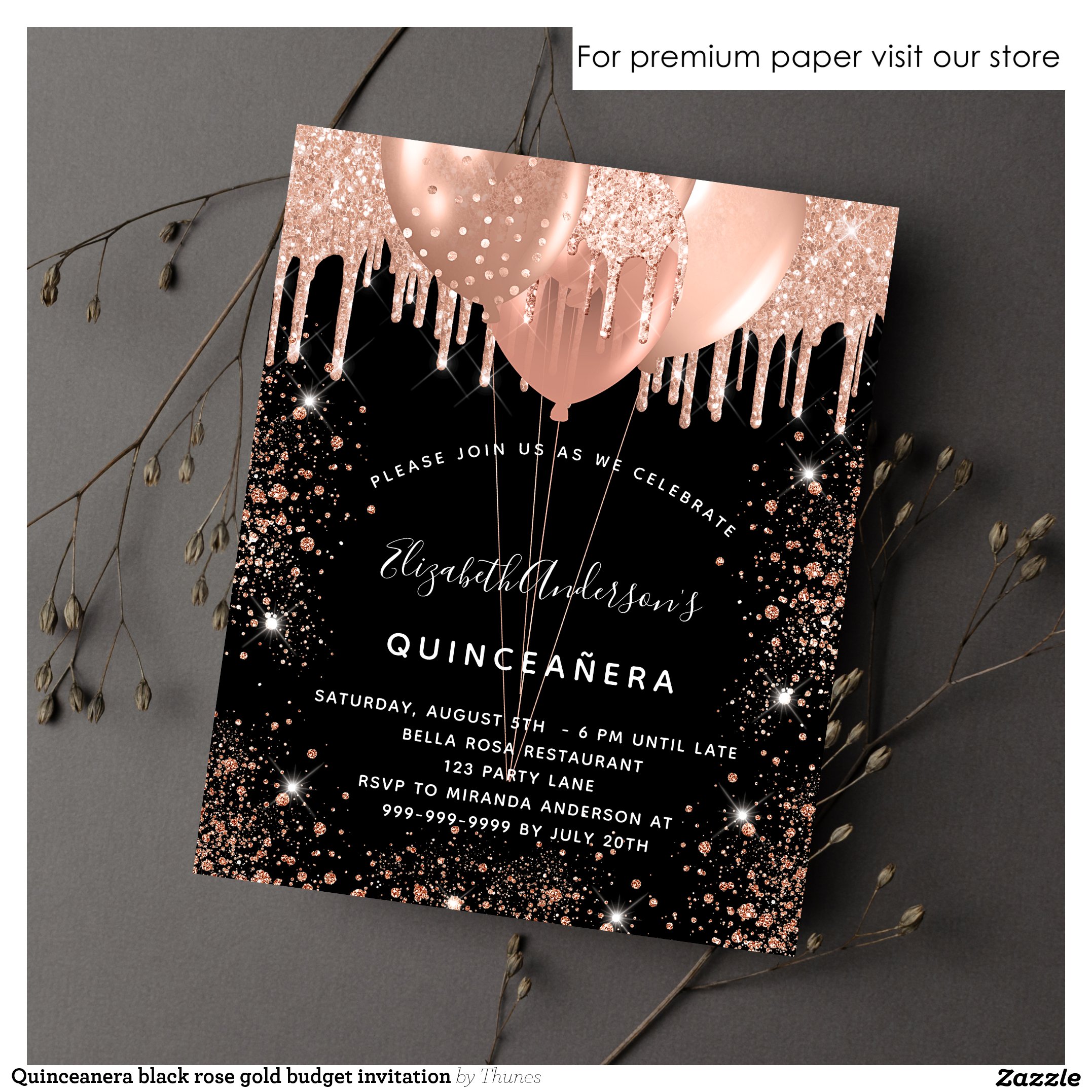 Be the first to review “Quinceanera black rose gold balloons invitation flyer”