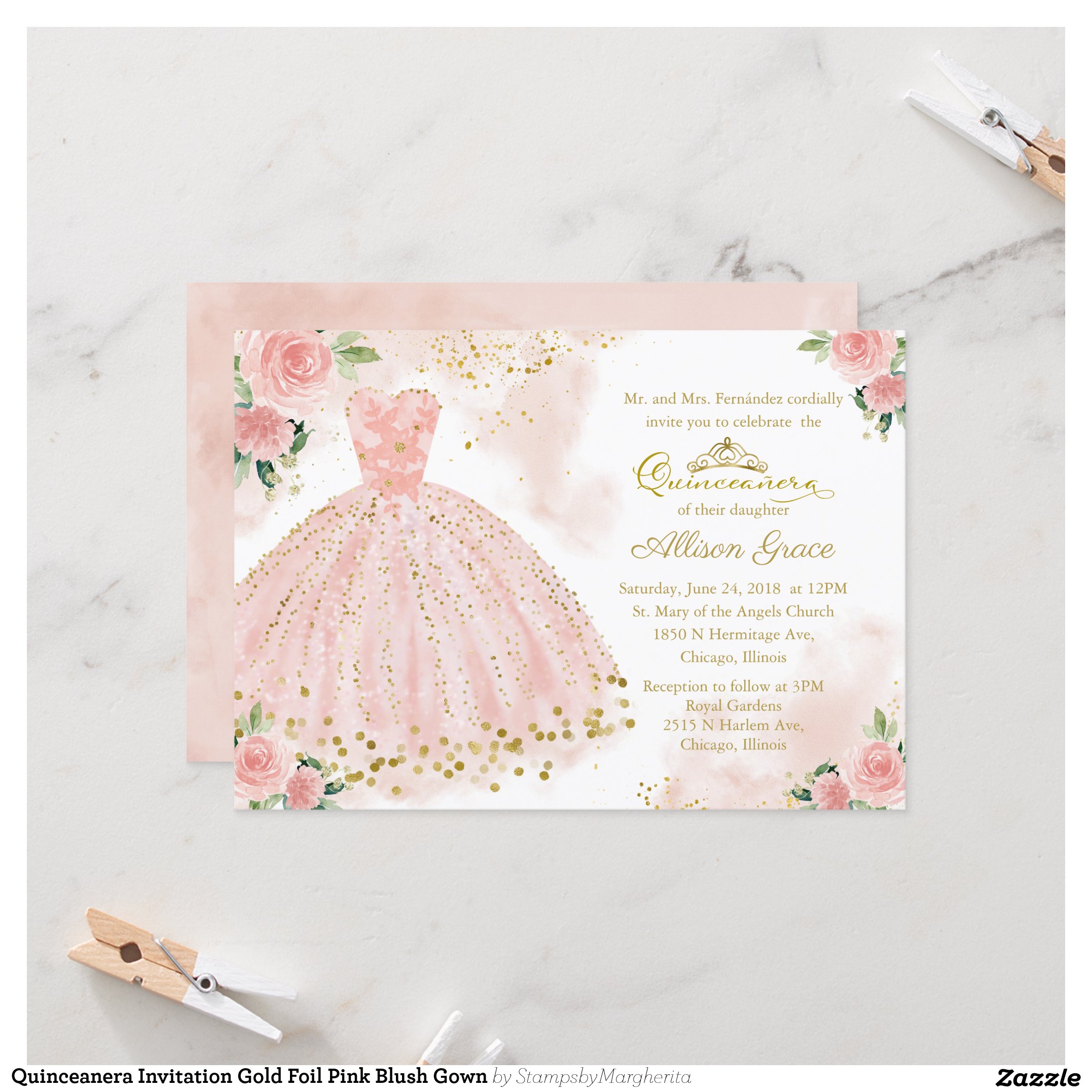 Be the first to review “Quinceanera Invitation Gold Foil Pink Blush Gown”