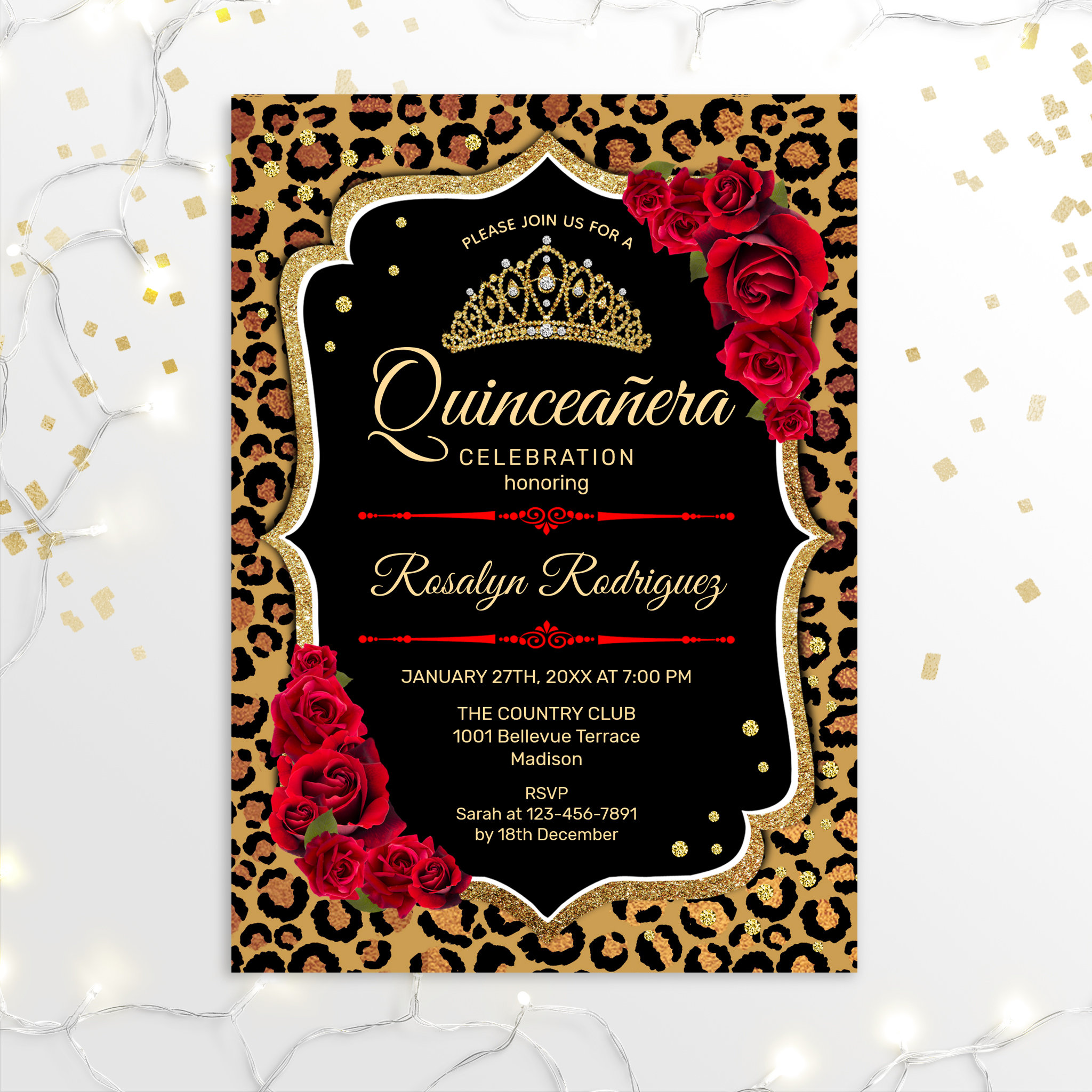 Be the first to review “Quinceanera – Leopard Print Gold Red Invitation”