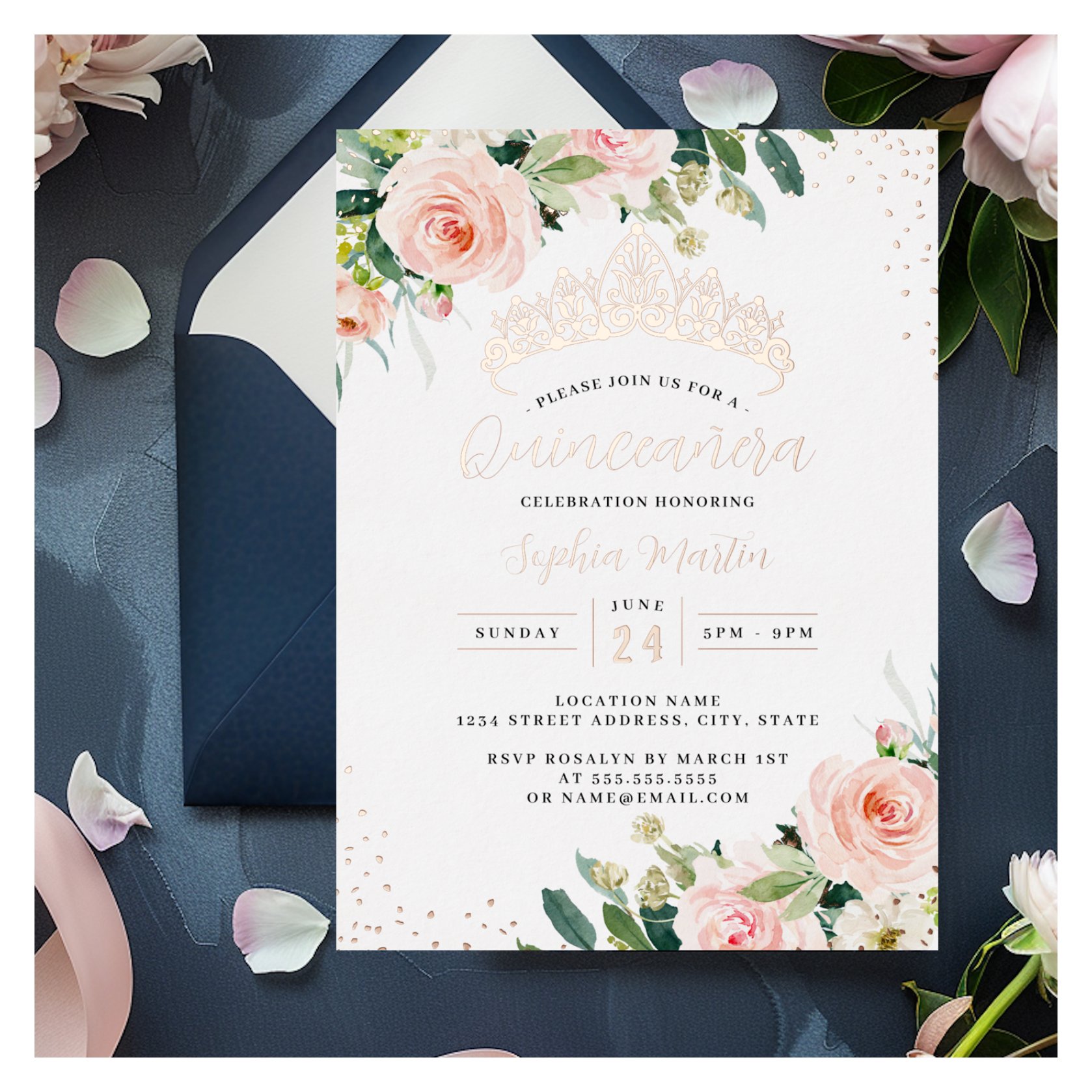 Be the first to review “Rose Gold Floral Quinceanera Foil Invitation”