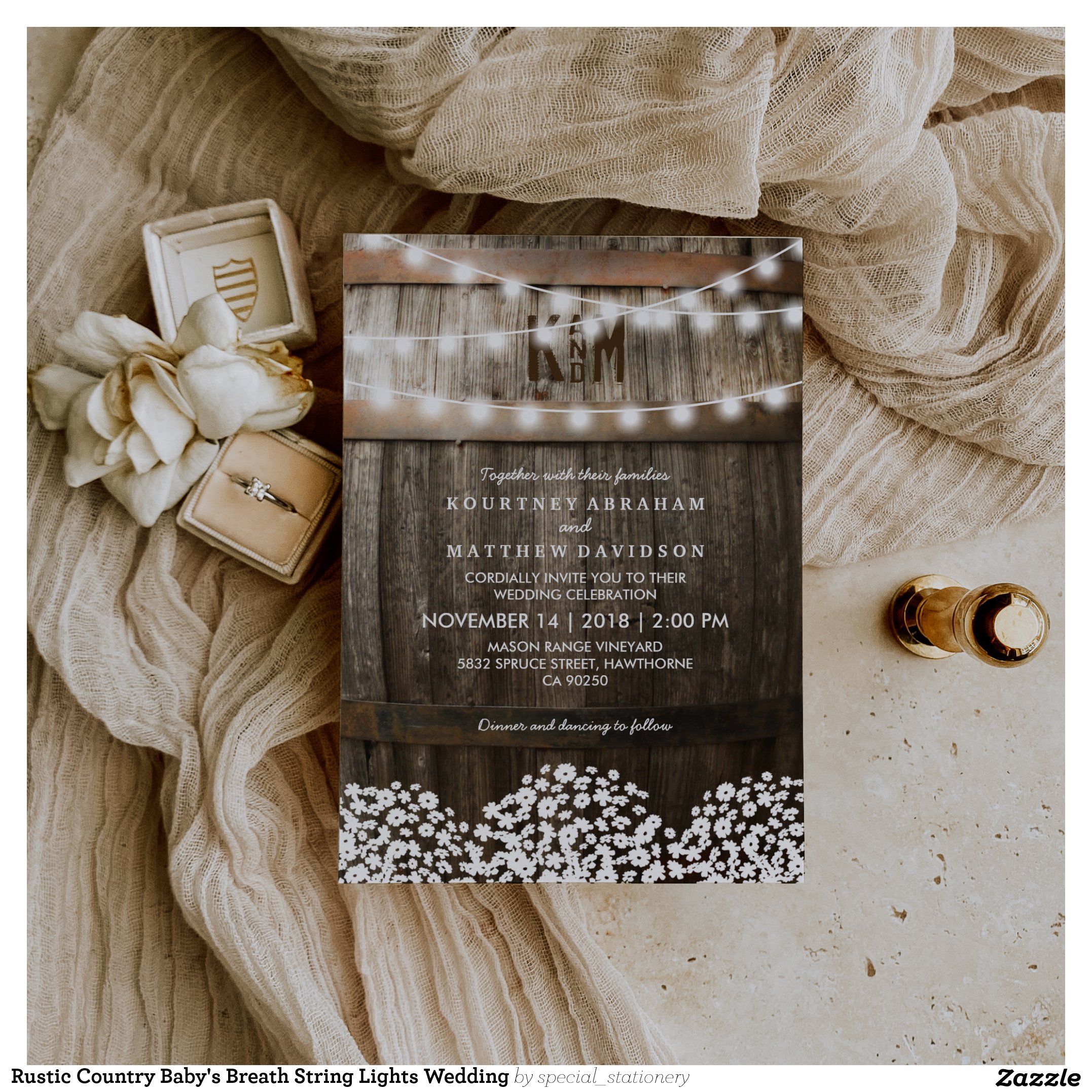 Rustic Country Baby’s Breath String Lights Wedding Invitation