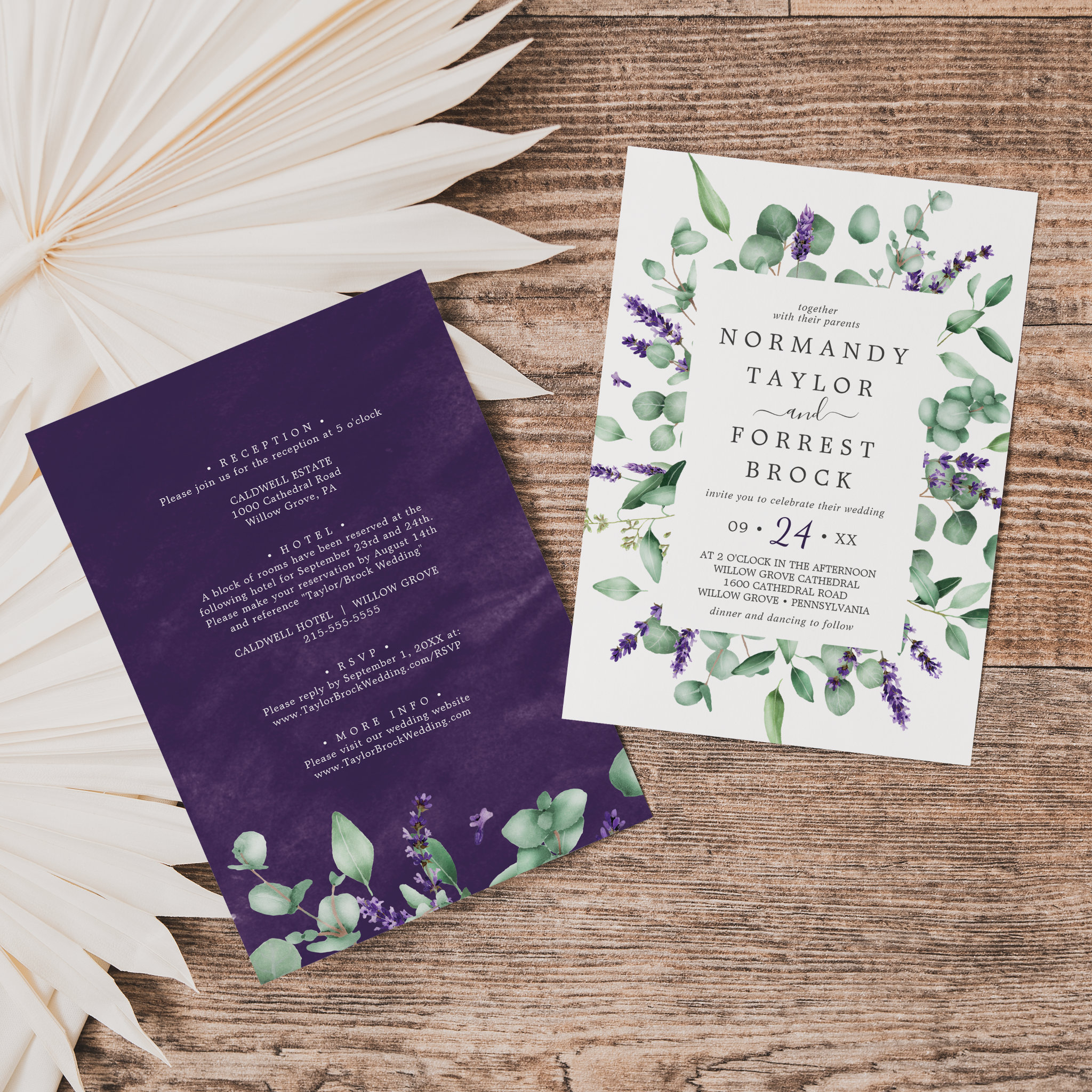 Rustic Lavender & Eucalyptus All In One Wedding Invitation