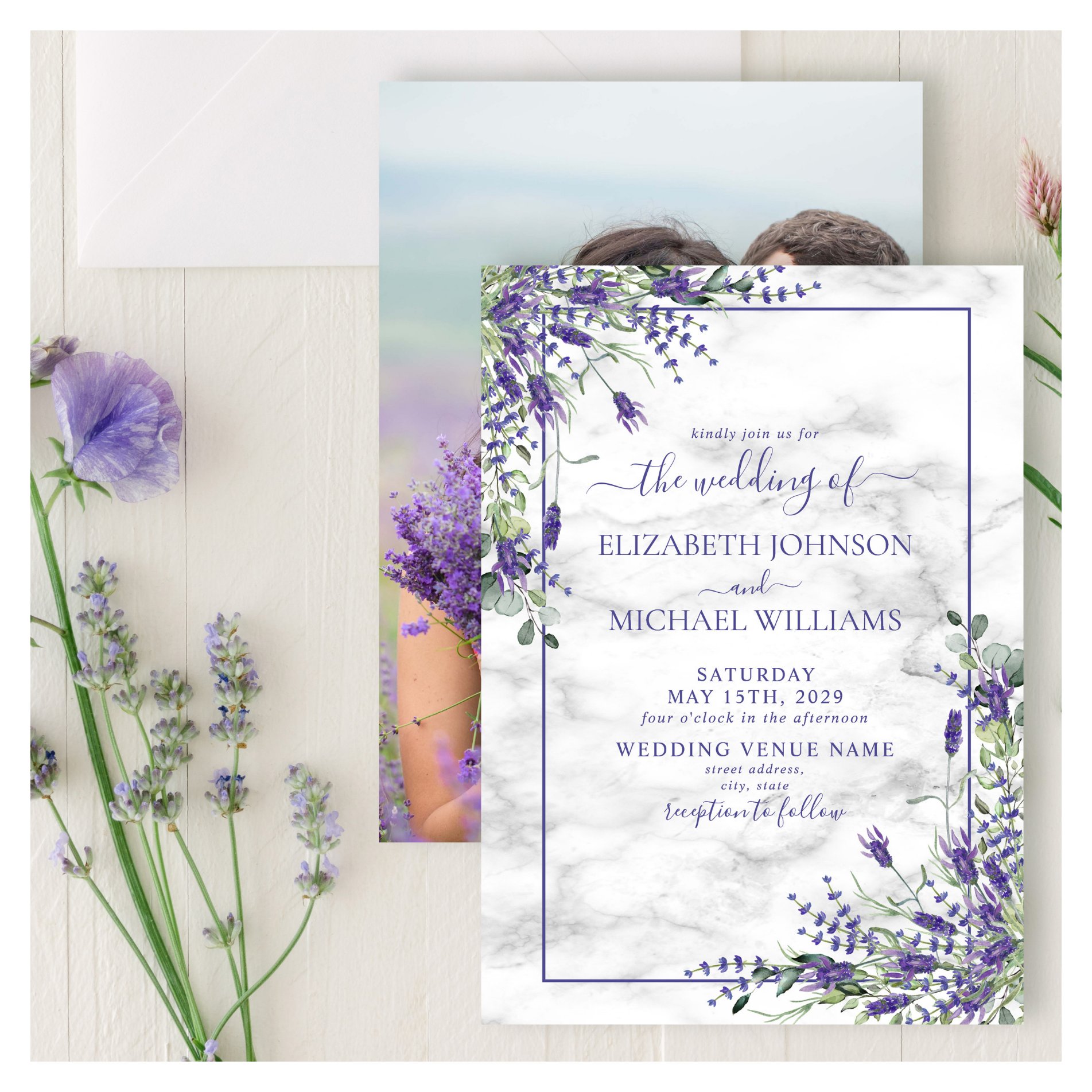 Be the first to review “Rustic Lavender Eucalyptus Greenery Photo Wedding Invitation”
