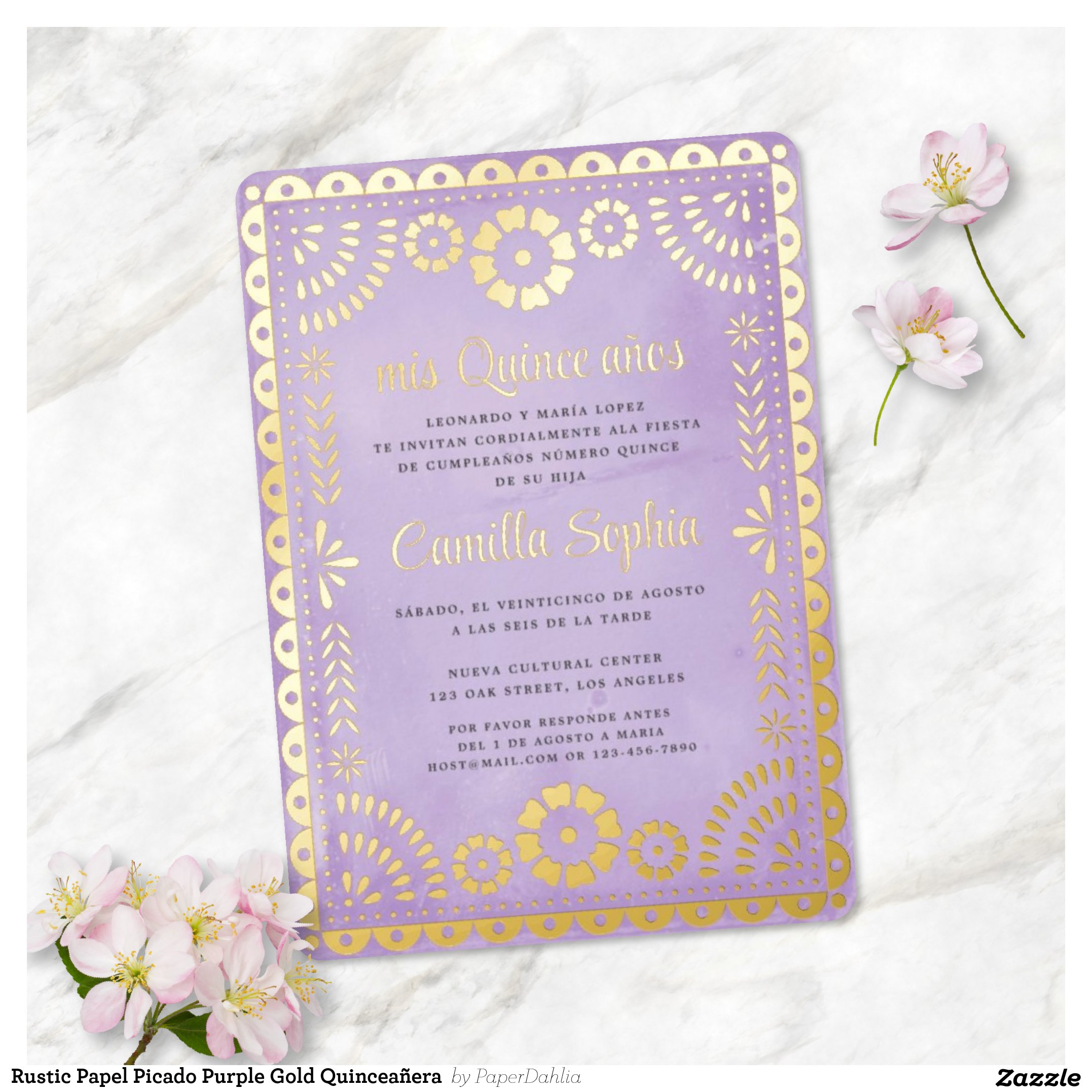 Be the first to review “Rustic Papel Picado Purple Gold Quincea?era Foil Invitation”