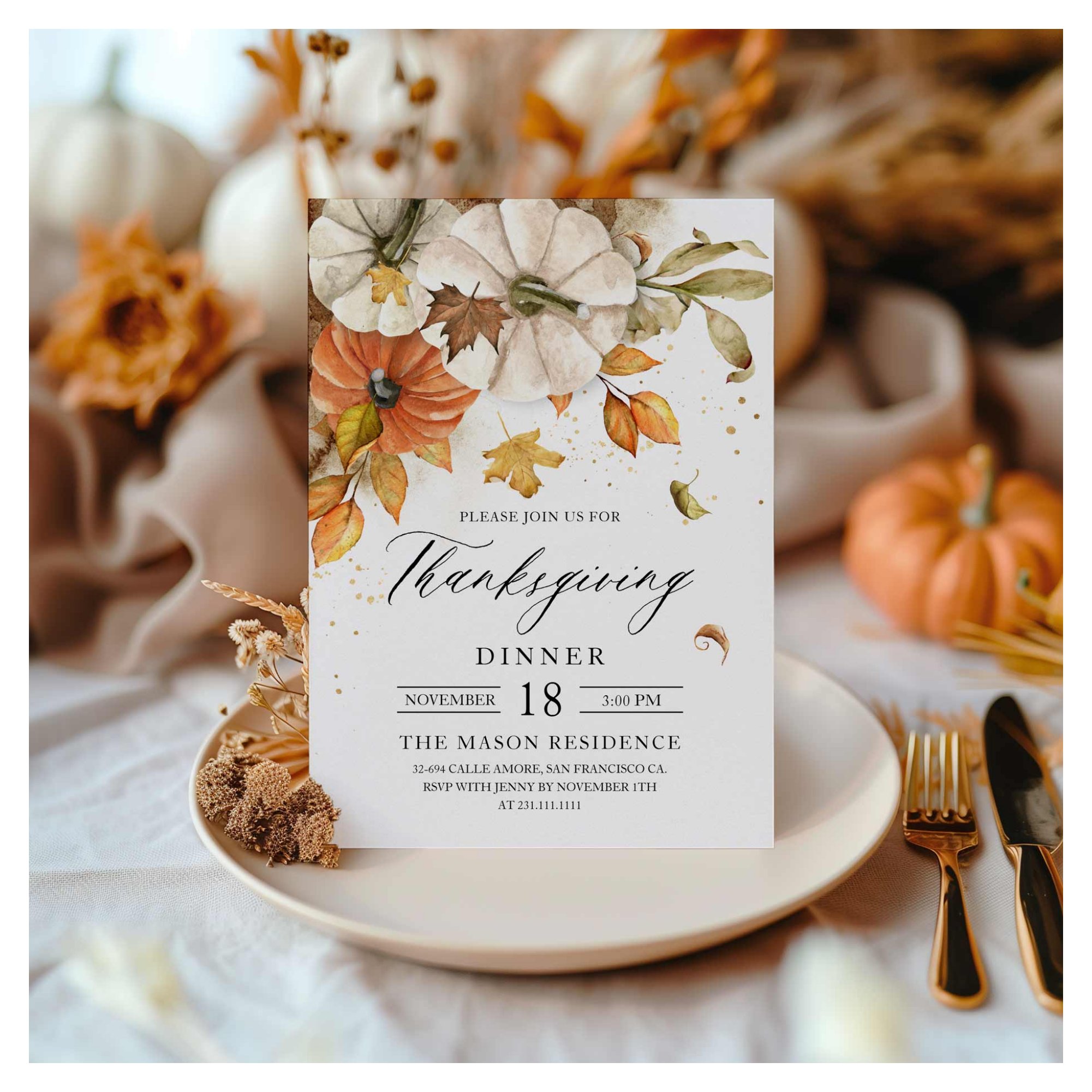 Rustic Thanksgiving Dinner Pumpkin Invitation
