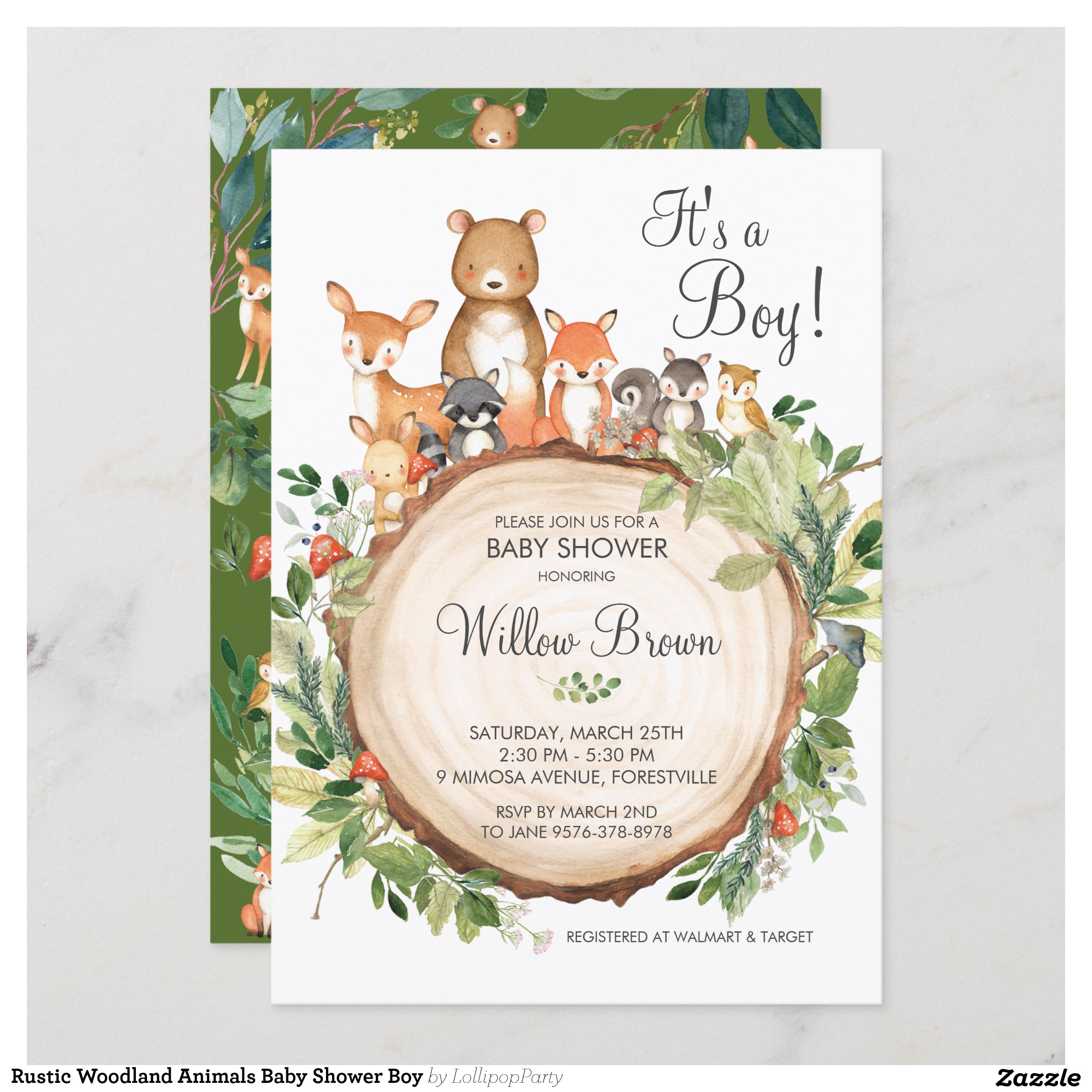 Rustic Woodland Animals Baby Shower Boy Invitation