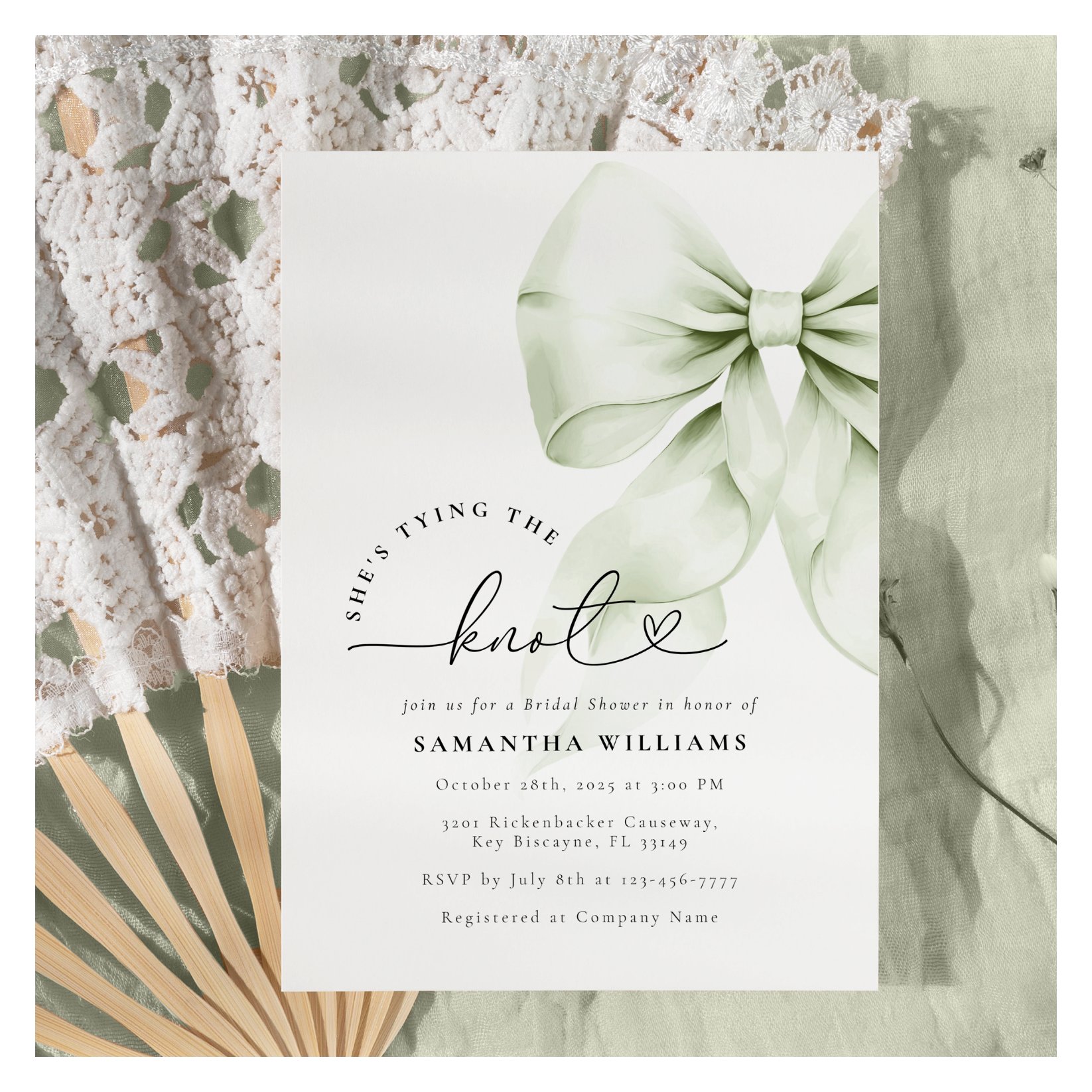 Sage Green Tying the Knot Bridal Shower Invitation
