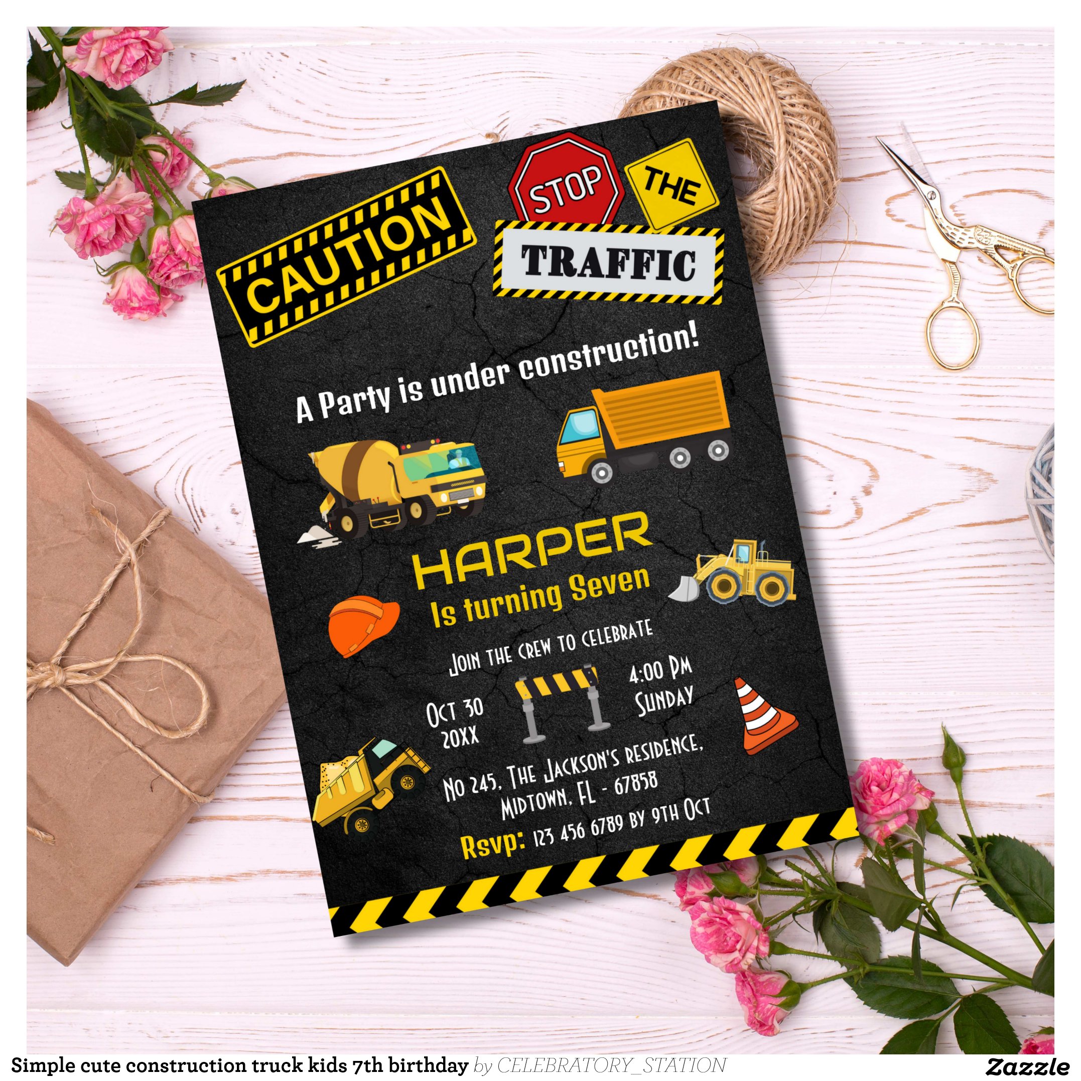 Be the first to review “Simple cute construction truck kids 7th birthday invitation”