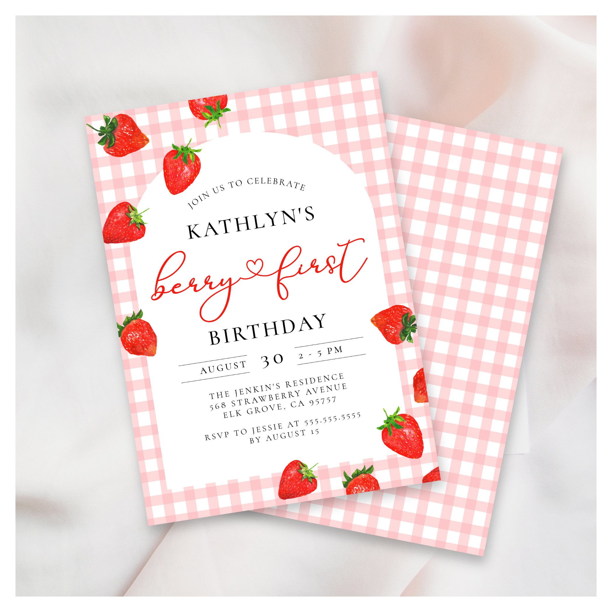 Strawberry 1st Birthday Pink Berry First Birthday Invitation