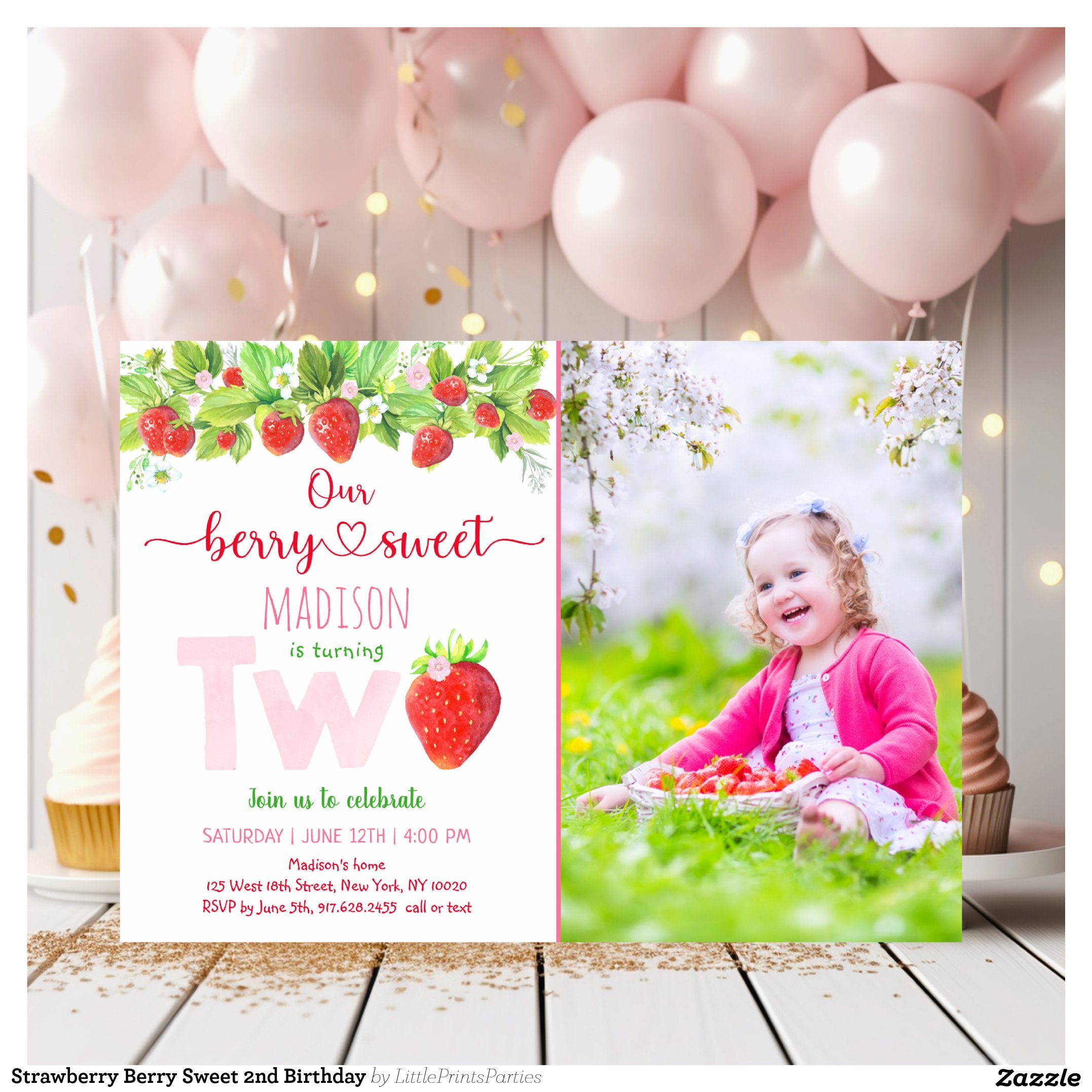 Strawberry Berry Sweet 2nd Birthday Invitation