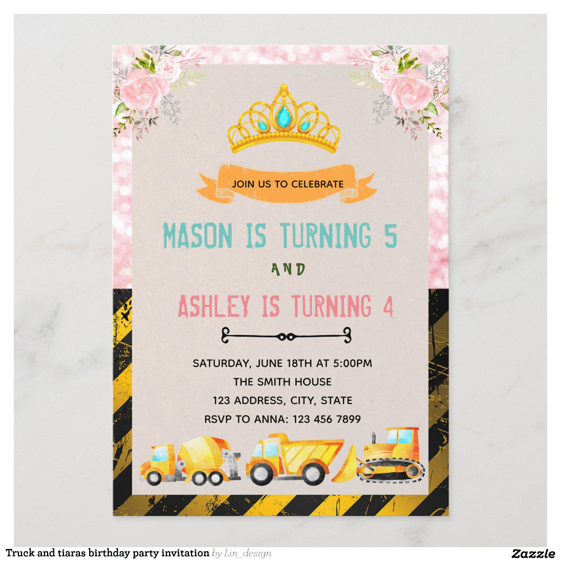 Be the first to review “Truck and tiaras birthday party invitation”