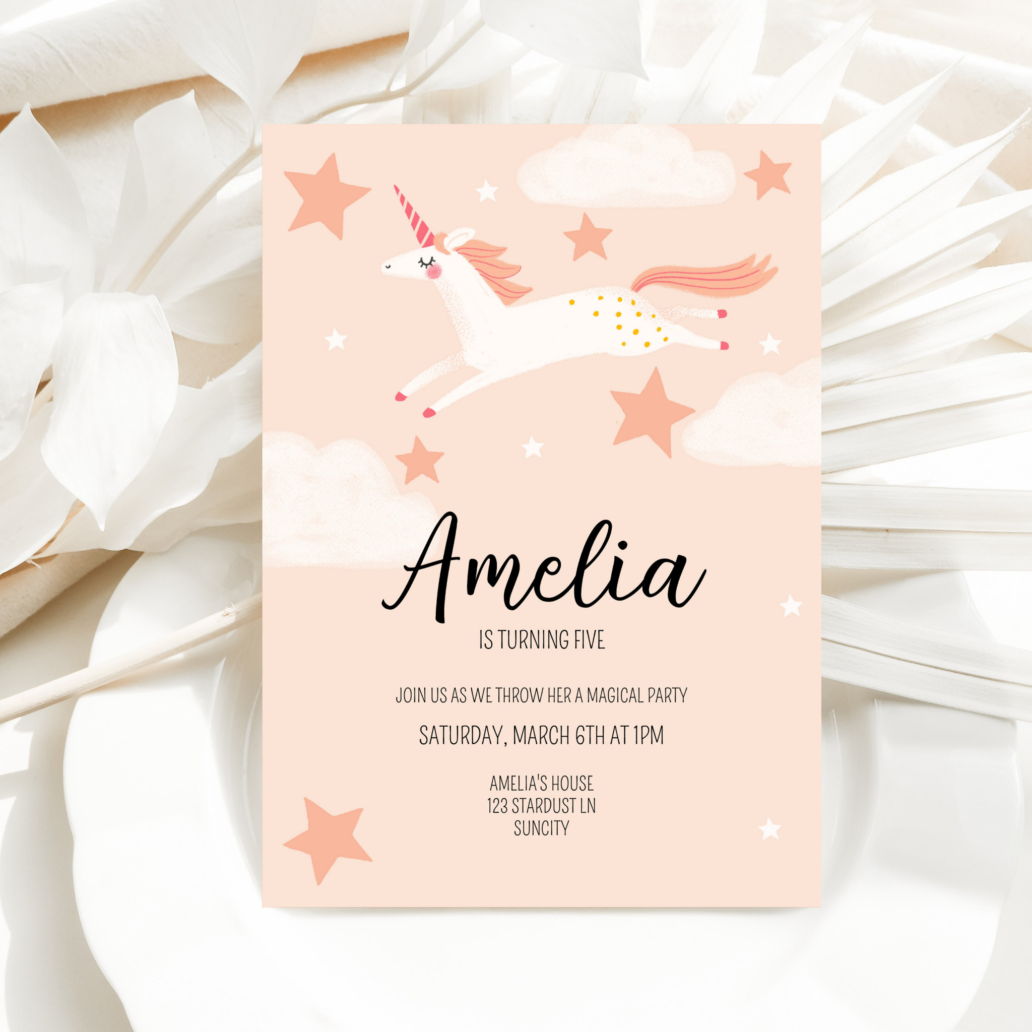 Unicorn and Stars Birthday Invitation