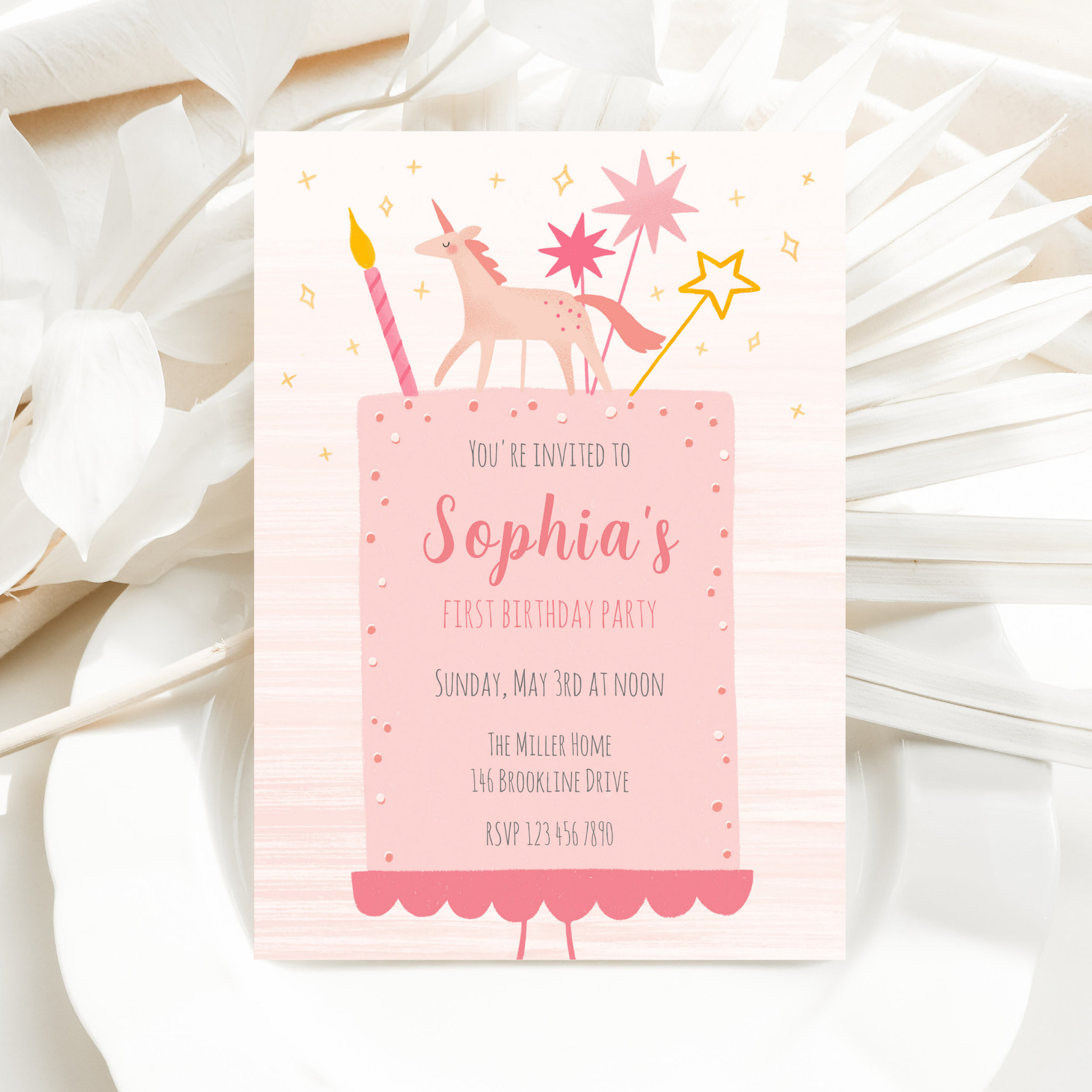 Unicorn Birthday Cake Invitation