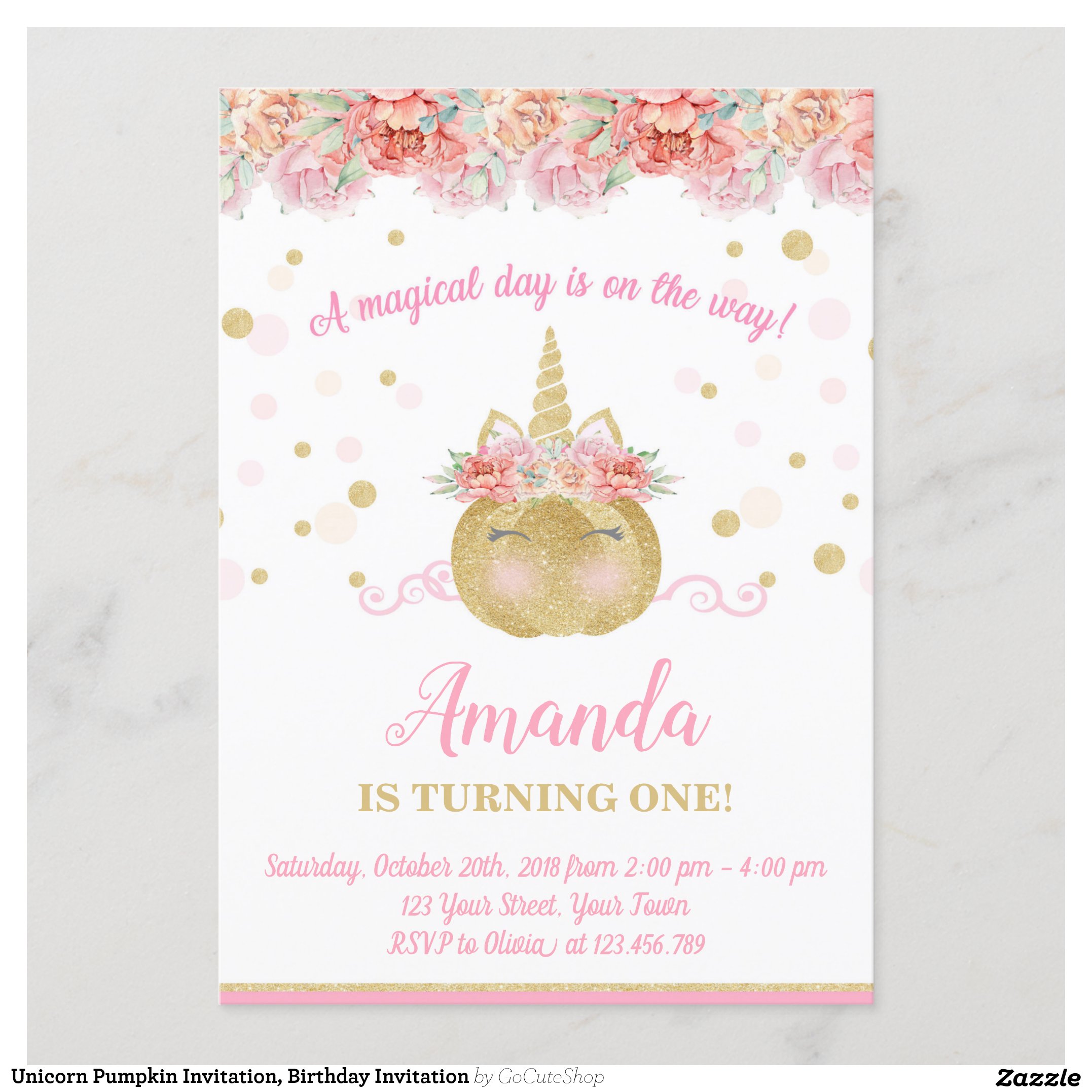 Unicorn Pumpkin Invitation, Birthday Invitation
