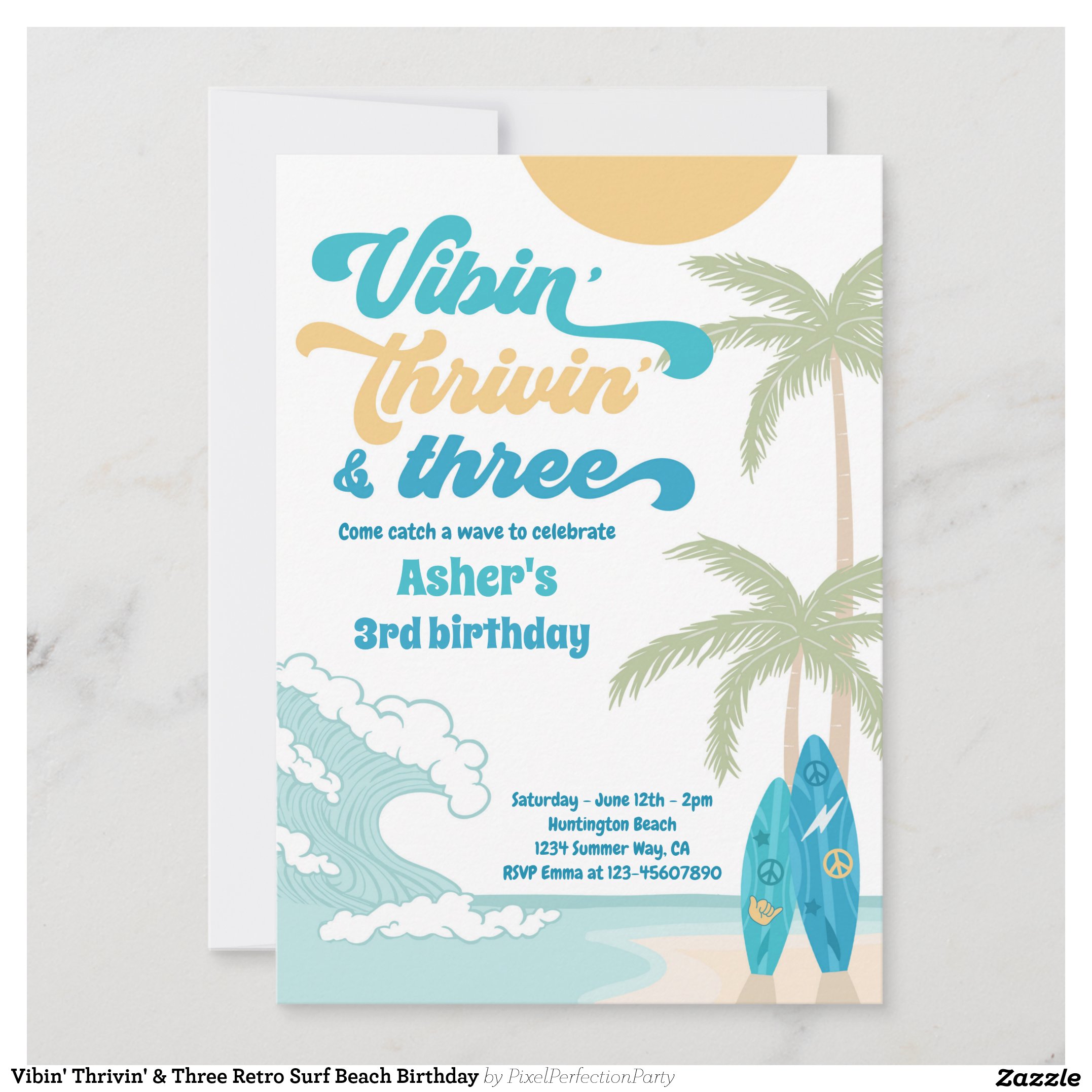 Vibin’ Thrivin’ & Three Retro Surf Beach Birthday Invitation