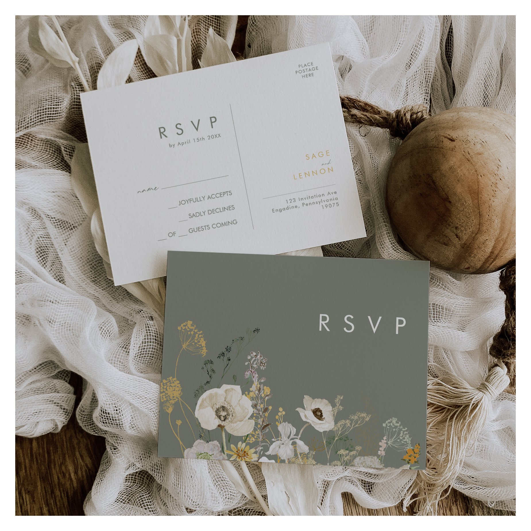 Be the first to review “Whimsical Wildflower Sage Green Wedding RSVP Postcard”
