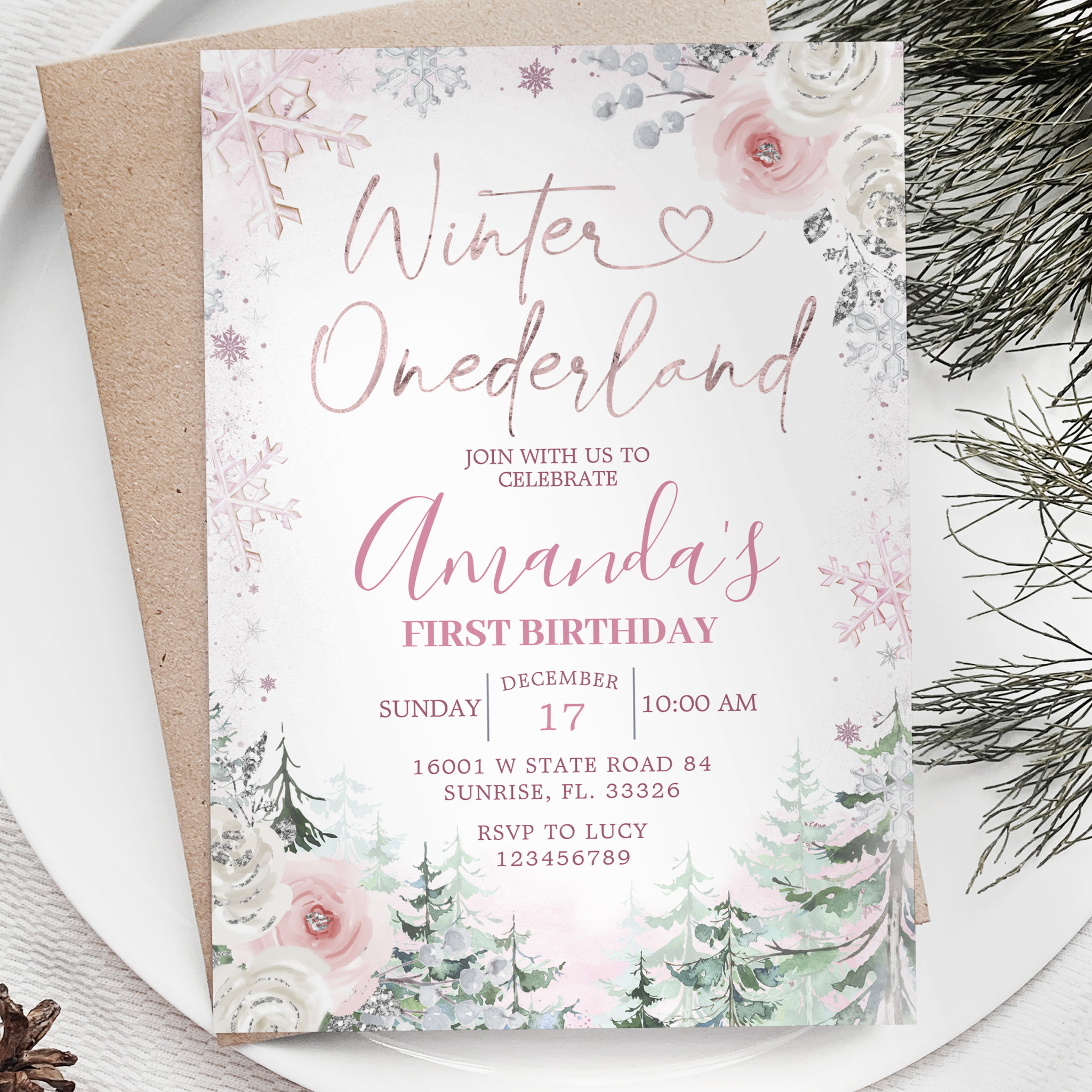 Be the first to review “Winter Onederland Pastel Pink Snowflake Birthday Invitation”