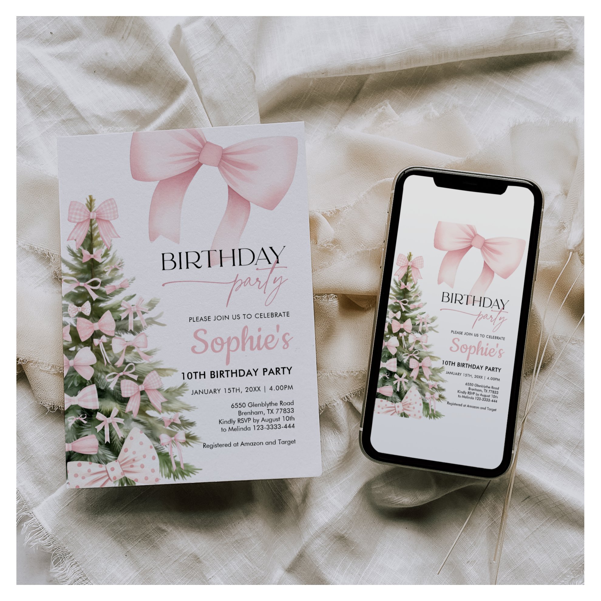 Be the first to review “Winter Pink Bow Birthday Invitation”