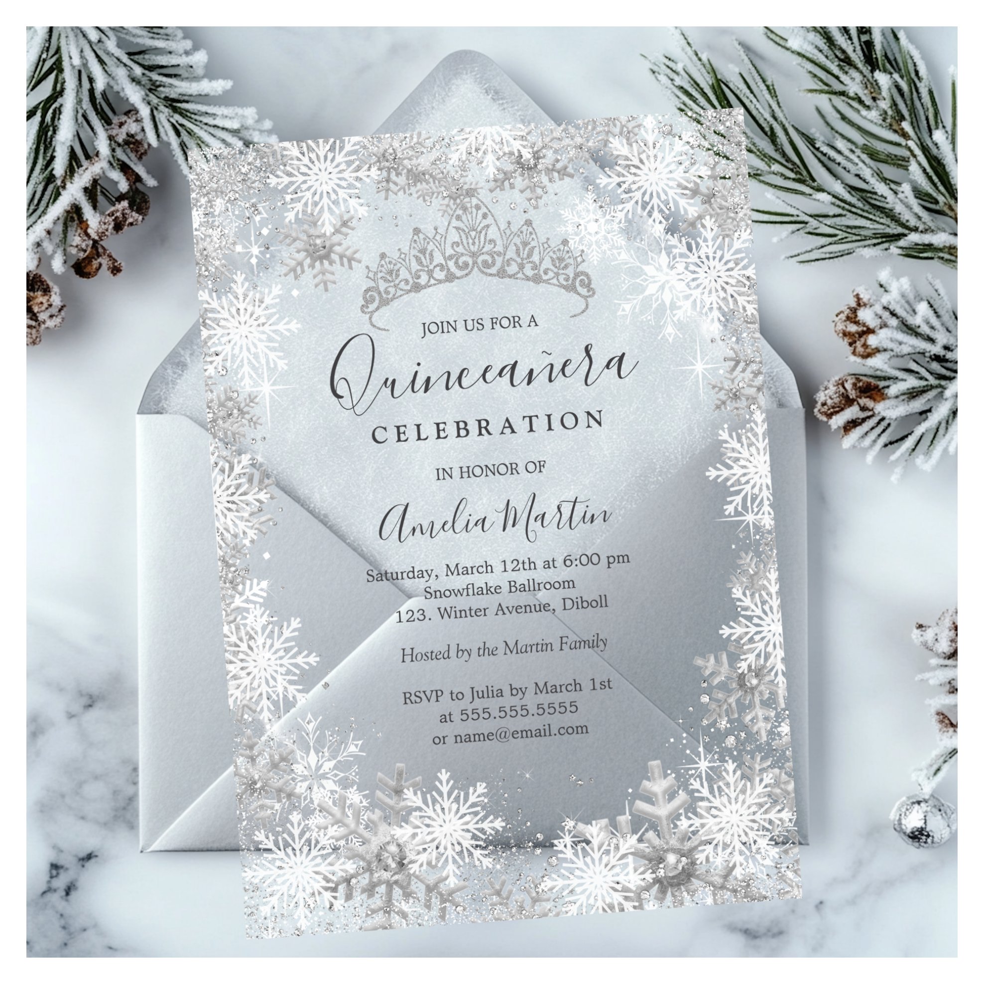 Winter Snowflake Fosted Quinceanera Acrylic Invitations